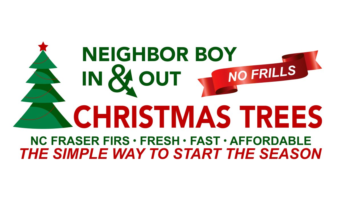 The name says it all: Neighbor Boy In & Out No Frills Christmas Trees is about making the experience fast, simple, and affordable. We know some families just want a beautiful, affordable tree. If that's you, you're in the right place! Come by Mondays through Thursdays 9 am til 5 pm, and drive IN the driveway at the front of Neighbor Boy Farm (just look for our In & Out banner). Choose a beautiful, wrapped #1 grade NC Fraser fir tree. Head OUT with a tree that was carefully grown and hand delivered straight from Austin’s NC mountain farm. No extras, no inflated prices. Just a beautiful, fresh North Carolina fraser fir tree. Our goal is to provide beautiful, #1-grade trees, at affordable prices, while keeping your spending local and personal. Be sure to bring cash payment.
